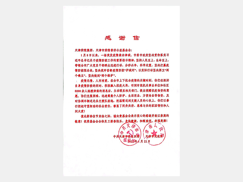 “疫情無(wú)情 人間有愛(ài)”榮程集團(tuán)疫情期間善行擔(dān)起守望相助社會(huì)責(zé)任感謝信