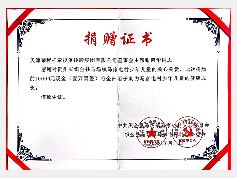 感謝捐贈10000元現(xiàn)金助力貴州省織金縣馬場鎮(zhèn)馬家屯村兒童健康成長