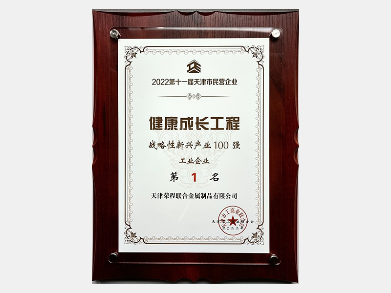 2022第十一屆天津市民營企業(yè)健康成長工程戰(zhàn)略性新興產(chǎn)業(yè)100強工業(yè)企業(yè)第1名
