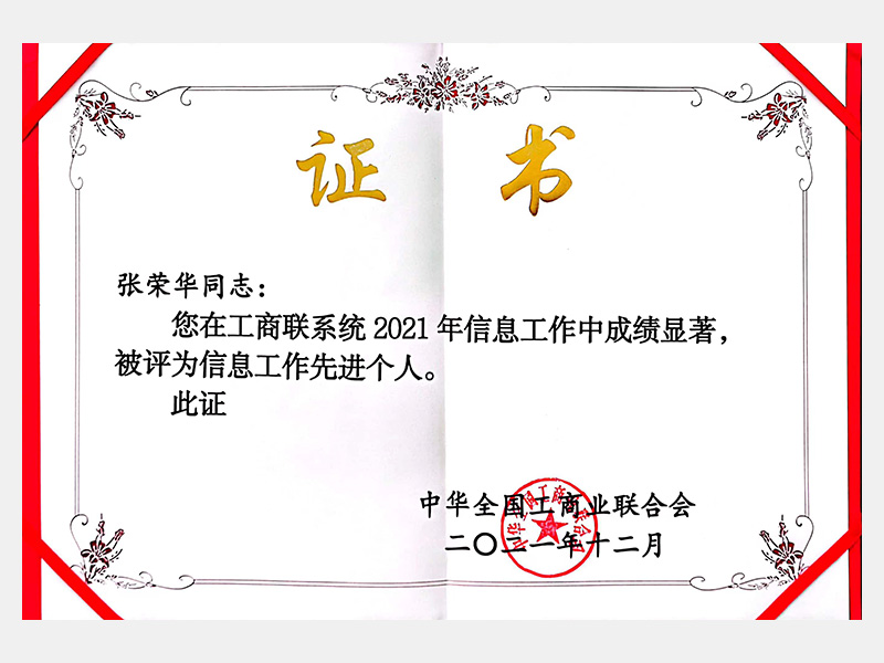 您在工商聯(lián)系統(tǒng)2021年信息工作中成績(jī)顯著,被評(píng)為信息工作先進(jìn)個(gè)人。