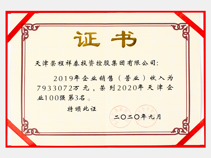 2019年企業(yè)銷售(營業(yè))收入為7933072萬元,榮列2020年天津企業(yè)100強第3名