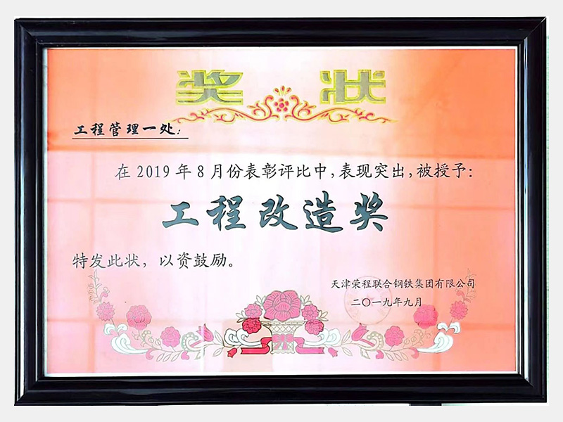 在2019年8月份表彰評比中,表現(xiàn)突出,被授予:工程改造獎