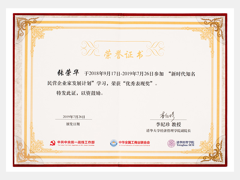“新時代知名民營企業(yè)家發(fā)展計(jì)劃”學(xué)習(xí)中,榮獲“優(yōu)秀表現(xiàn)獎”