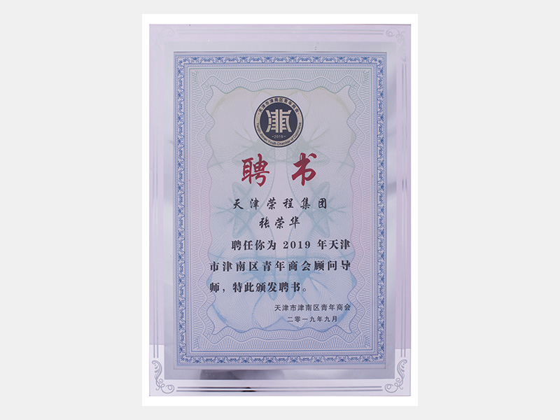 天津榮程集團(tuán)張榮華聘為2019年天津市津南區(qū)青年商會(huì)顧問導(dǎo)師(聘書)