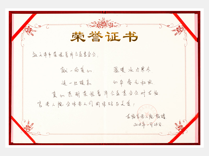 “購滯銷蔬菜捐贈養(yǎng)老院福利院活動”龍福宮老人院榮譽(yù)證書(慈善)